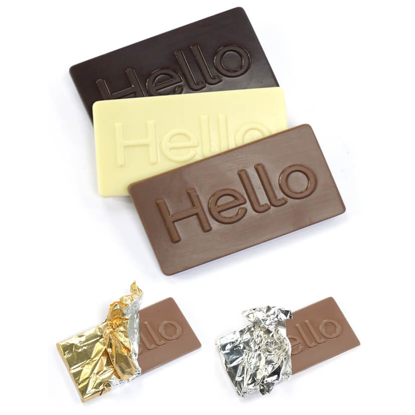 Our โHelloโ bar is a natural fit for exhibitions and trade shows. Instead of handing out yet another leaflet or pen, youโre giving something people actually want to take away. Visitors to your stand will be drawn in by the promise of chocolate, and theyโll walk away remembering your brand.