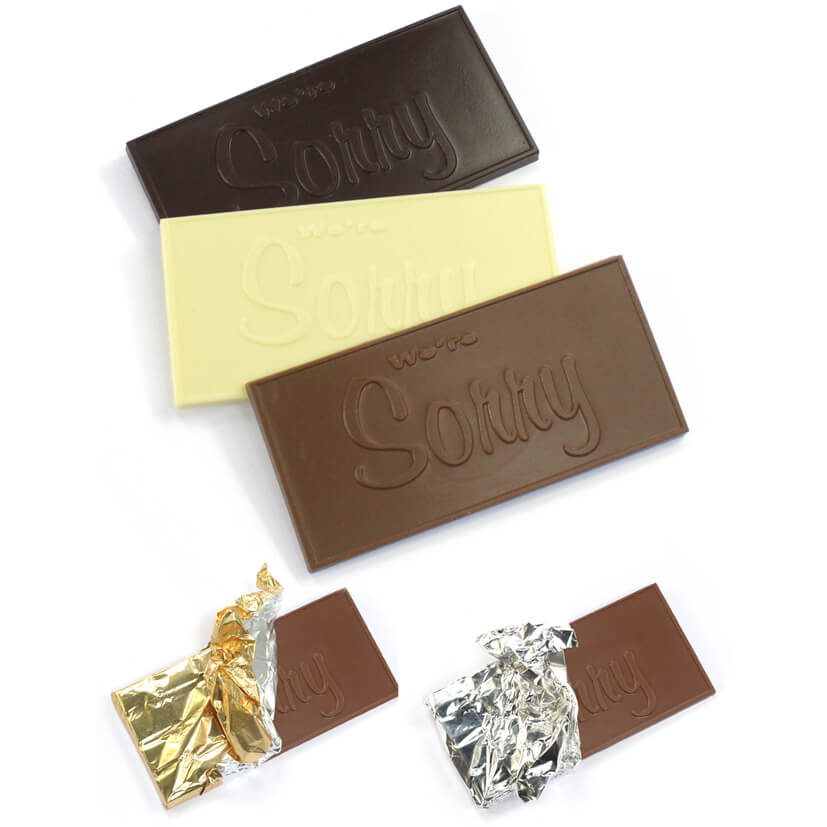 We Are Sorry โ mistakes happen. A sincere apology delivered with a bar of chocolate is far more likely to leave a positive lasting impression than a standard email.