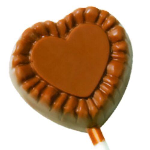 - Chocolate Heart lollipop, dimensions: 45 x 45 mms.