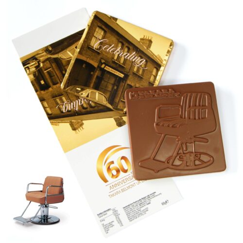 An outline of your product will be raised out of the chocolate, featuring all the fine detail. It’s a lovely chocolate gift to give to all your clients, staff and suppliers when you are celebrating an anniversary or occasion in your business.
