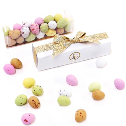 - Quality milk chocolate mini eggs in a crispy speckled shell.