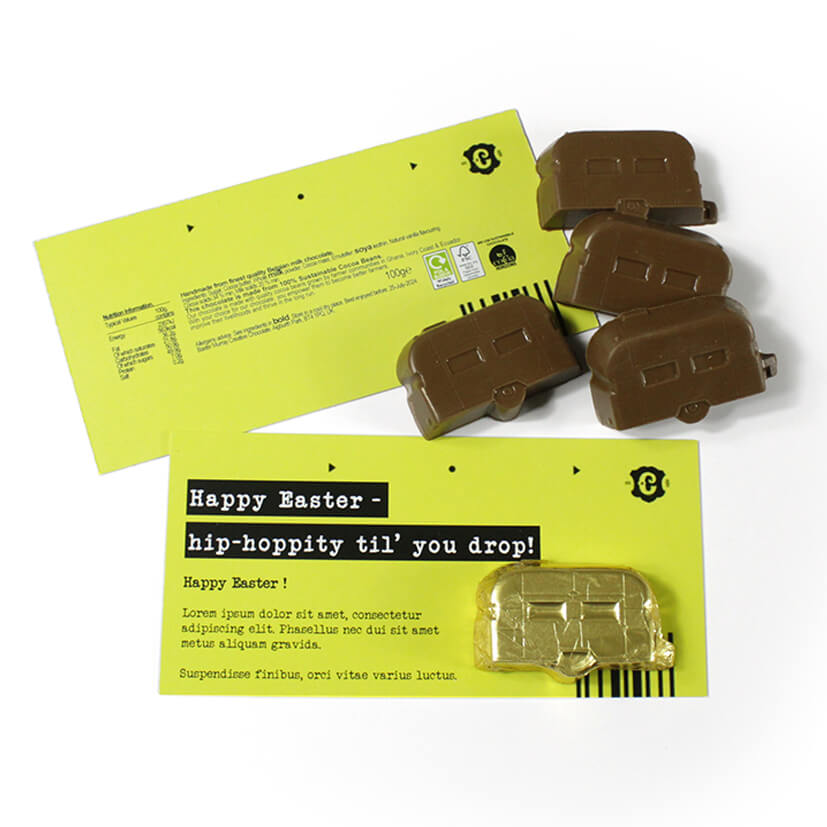 Promotional chocolate caravans, are the perfect promotional giveaway for manufacturers, sales or caravan holidays.